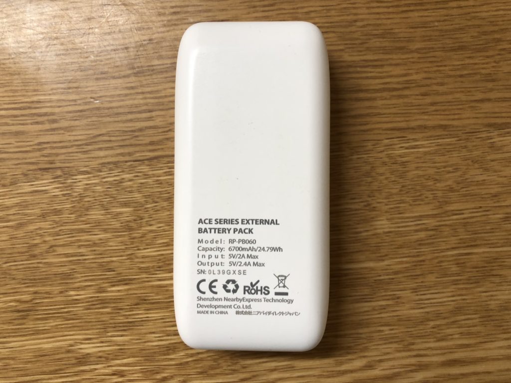 私が普段使用しているRavpowerのRP-PB060はWh表記だが、手元に他のモバイルバッテリーがないのでこちらを例に計算式を紹介する。