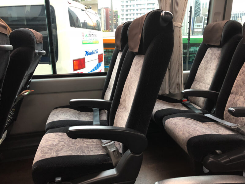 こちらのバスは2列×2列のバスでトイレ・Wi-Fi付き、約1時間で成田空港へ着く。運賃は1,000円。ドライバーは無線で道路状況の確認をしておりほとんど遅延が無いそうだ。