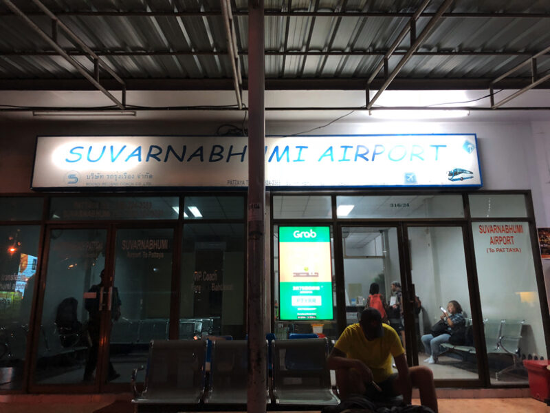 昨日のチケットを買った時と同じようにジョムティエンビーチ行きのソンテウ乗り場へ。今回も5分もしないうちに出発し、10分ほどでエアポートバス乗り場に到着。
